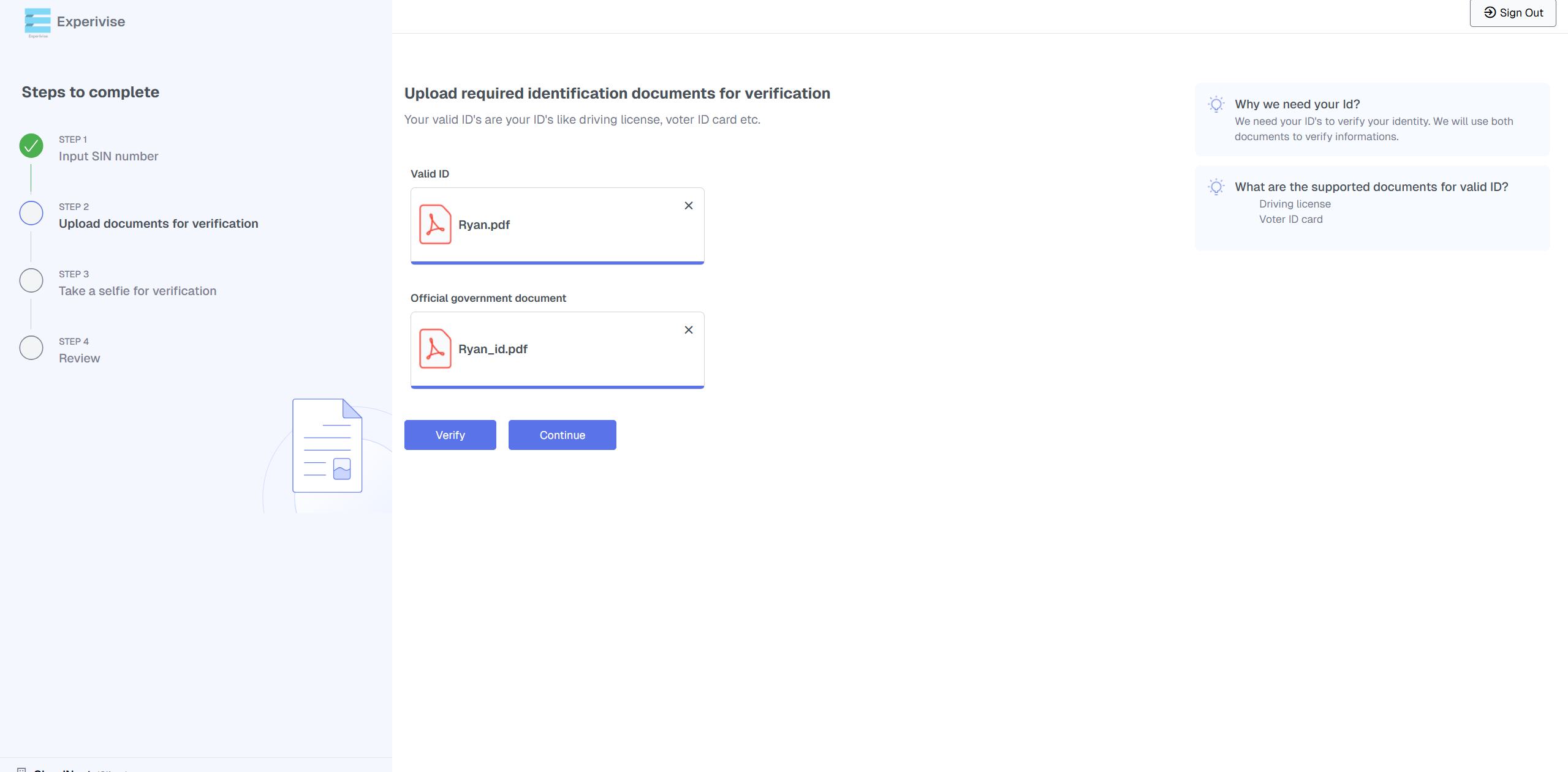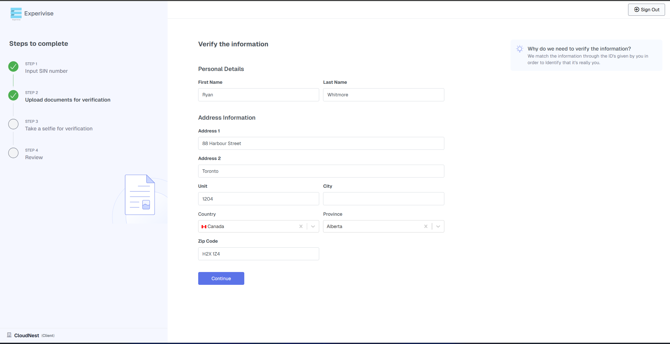 Fill out all required fields in the verification form and click ‘‘Continue’’.