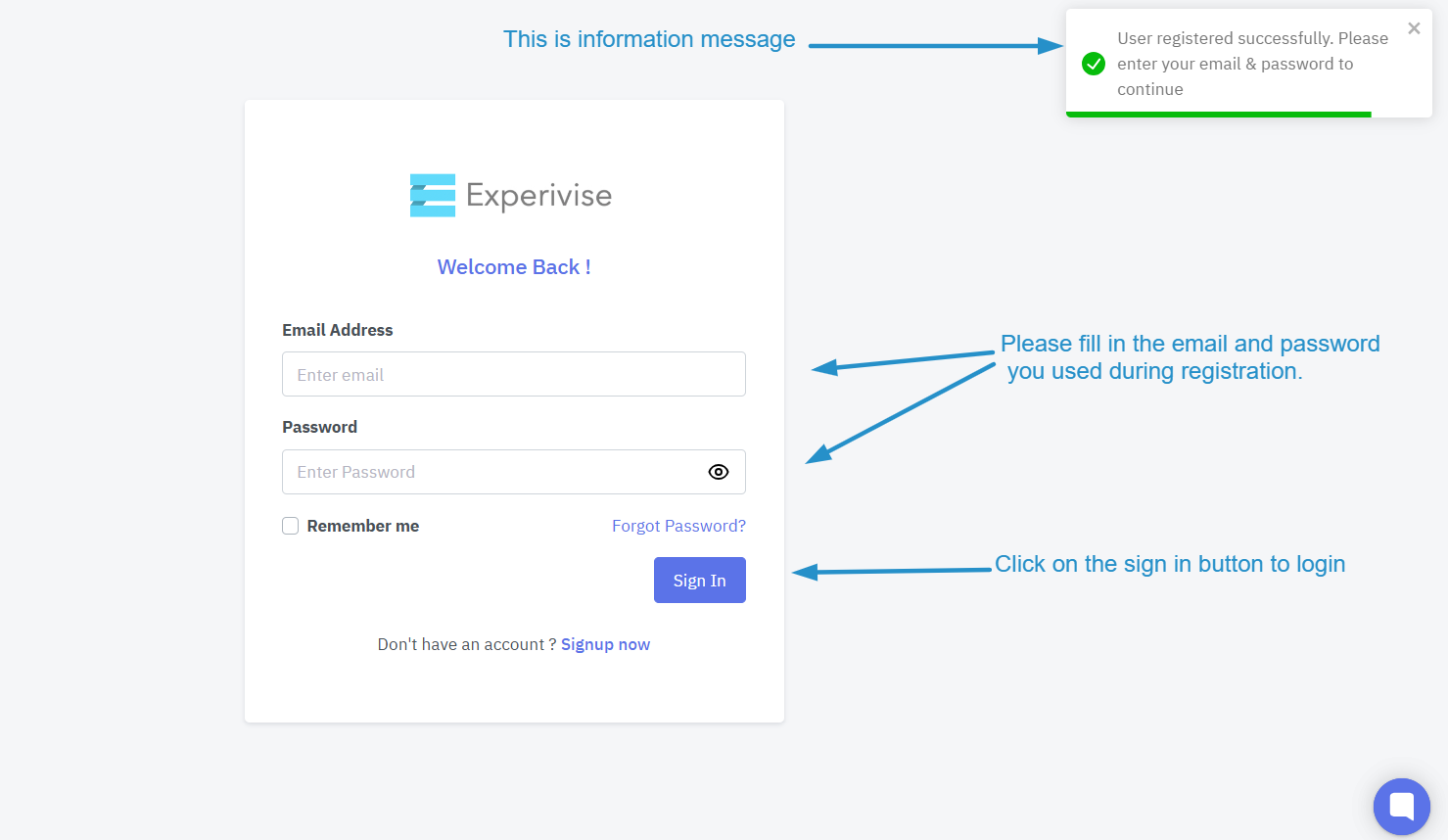 Once your registration is successfully completed, log in using the email and password you provided during registration.
